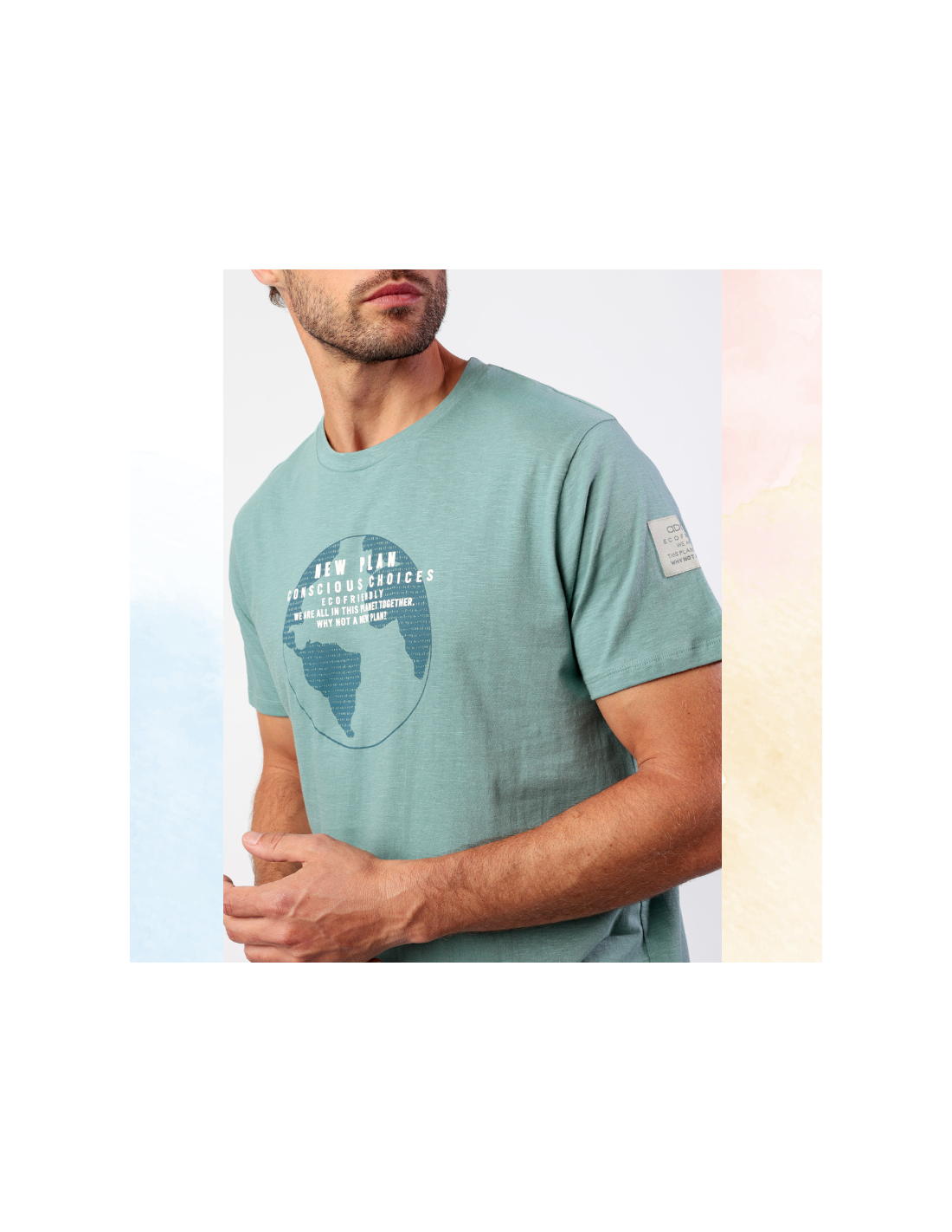 con la bola del mundo y varias inscripciones en la pechera de color blanco. El pantalón es