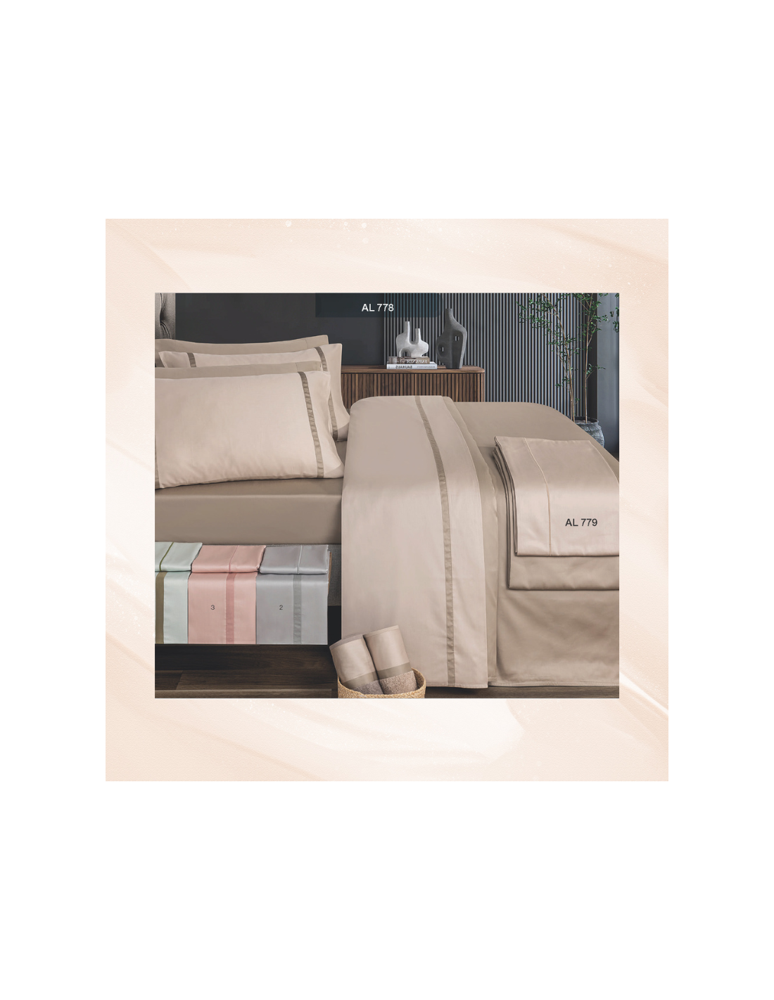Juego de sábanas de San Jose de 200 hilos en algodón satinado. La bajera es de color topo